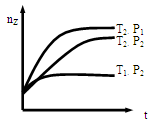 cZ(g), 在不同的溫度(T1和T2)及壓強(P1和P2)下,產(chǎn)物Z的物質(zhì)的量(nZ)與反應(yīng)時間(t)的關(guān)系如圖所示。下列判斷不正確的是![]()