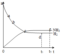 2NH3(g),在673K、30Mpa下,n(NH3)和n(H2)隨時間變化的關(guān)系如右圖所示,下列敘述正確的是( )![]()