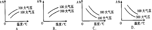 pC(g);△H<0中m、n、p為系數(shù),且m+n>p。分析下列各圖,在平衡體系中A的質(zhì)量分?jǐn)?shù)與溫度t℃、壓強(qiáng)P關(guān)系正確的是( 。![]()