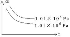 cC(g) +dD(g),C物質(zhì)的質(zhì)量分?jǐn)?shù)(C%)與溫度、壓強(qiáng)的關(guān)系如圖所示,下列判斷正確的是 ( )![]()