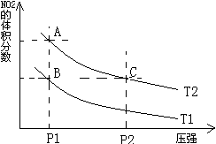 時(shí),平衡體系中NO2的體積分?jǐn)?shù)隨壓強(qiáng)變化曲線如圖所示。下列說法正確的是 ( )![]()