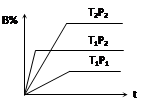 pC(g),在密閉容器中進(jìn)行,下圖表示在不同反應(yīng)時(shí)間t、溫度T和壓強(qiáng)P與反應(yīng)物B在混合氣體中的百分含量B%的關(guān)系曲線,由曲線分析,下列判斷正確的是( )![]()