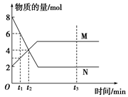 在一定溫度下,容器內(nèi)某一反應(yīng)中M、N的物質(zhì)的量隨時(shí)間變化的曲線如圖所示,下列表述中正確的是( )![]()