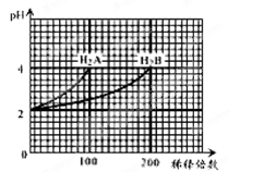 常溫下,取pH=2的兩種二元酸H2A與H2B各1 mL,分別加水稀釋,測得pH變化與加水稀釋倍數(shù)有如圖所示變化,則下列有關(guān)敘述正確的是 ( )![]()
