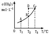CO2(g)+H2(g)CO2(g)的平衡物質(zhì)的量濃度c(CO2)與溫度T的關(guān)系如圖所示。下列說法不正確的是![]()