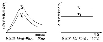 | C.反應(yīng)Ⅲ△H> 0,T2>T1;或△H<0,T2<T1 | D.反應(yīng)Ⅳ△H<0,T2>T1 |