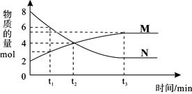 在一定溫度下,容器內(nèi)某一反應(yīng)中M、N的物質(zhì)的量隨反應(yīng)時間變化的曲線如下圖,下列表述中正確的是( )![]()