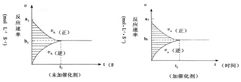 pC(g)+gD(g),若其它條件都不變,只是在反應前是否加入催化劑,可得到兩種υ~t圖象如下圖。則如下關系正確的為 ( )![]()