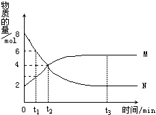 在一定溫度下,容器內(nèi)某一反應(yīng)中M、N的物質(zhì)的量隨反應(yīng)時(shí)間的變化曲線如圖,下列表述中正確的是![]()