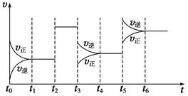 | A.t2時(shí)加入了催化劑 | B.t3時(shí)降低了溫度 |