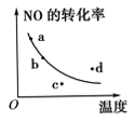 ?2NO2 ΔH<0,NO的轉(zhuǎn)化率與溫度的關(guān)系曲線,圖中標(biāo)有a、b、c、d四點(diǎn),其中表示未達(dá)到平衡狀態(tài),且v(正)>v(逆)的點(diǎn)是( )![]()