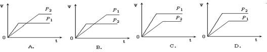 2Y(g) + Z(g)中,生成物Z在反應混合物中的體積分數(shù)(ψ)與反應時間(t)的關系有以下圖示,正確的是![]()