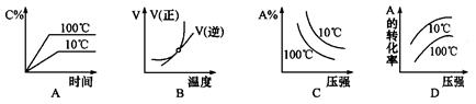 (n為正整數(shù))在不同條件下反應混合物中C的百分含量和反應過程所需時間的關(guān)系曲線如右圖所示。下列有關(guān)敘述中一定正確的是![]()