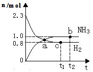 2NH3(g),若反應(yīng)過程中n(H2)和n(NH3)隨時(shí)間變化的關(guān)系如圖所示,則下列有關(guān)敘述中正確的是![]()