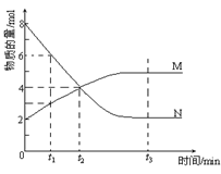 在一定溫度下,容器內(nèi)某一反應(yīng)中M、N的物質(zhì)的量隨反應(yīng)時間變化的曲線如下圖,下列表述中正確的是![]()