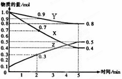 ( 6分)某溫度時,在2L容器中X、Y、Z三種物質(zhì)隨時間的變化關系曲線如圖所示。![]()