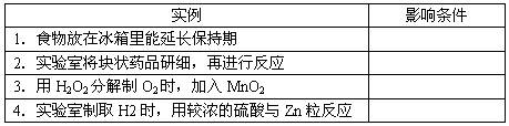 影響化反應速率的因素很多,某;瘜W小組用實驗的方法進行探究。他們只利用Cu、Fe、Mg和不同濃度的硫酸(0.5mol/L、2mol/L、18.4mol/L),設(shè)計實驗方案來研究影響化學反應速率的因素。![]()