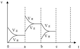 2SO3(g)ΔH<0達(dá)到平衡時,由于條件改變而引起反應(yīng)速度和化學(xué)平衡的變化情況,a ~b過程中改變的條件可能是 ;b ~c過程中改變的條件可能是 ;若增大壓強時,反應(yīng)速度變化情況畫在c~d處. ![]()