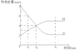 (4分)在一定溫度下,固定容積的2L容器內(nèi)某一反應(yīng)中M、N的物質(zhì)的量濃度隨反應(yīng)時(shí)間變化的曲線如圖所示:![]()