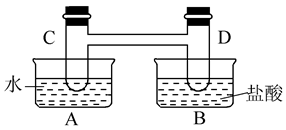 如下圖所示,在容器A中裝有20℃的水50 mL,容器B中裝有1 mol/L的鹽酸50 mL,試管C、D相連通,且其中裝有紅棕色NO2和無色N2O4的混合氣體,并處于下列平衡:2NO2(g)