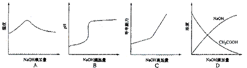 將氫氧化鈉稀溶液滴加到醋酸稀溶液中,下列各圖示意混合溶液有關量或性質的變化趨勢,其中錯誤的是![]()