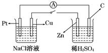 如圖所示,將兩燒杯用導(dǎo)線如圖相連,Pt、Cu、Zn、C分別為四個(gè)電極,當(dāng)閉合開關(guān)后,以下敘述正確的是 ![]()