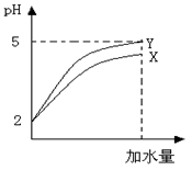 常溫下pH均為2的兩種酸溶液X和Y各10 mL分別加水稀釋到10000 mL,其pH與所加水的體積變化如圖所示,下列結(jié)論中正確的是![]()