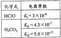 | B.根據(jù)下表提供的數(shù)據(jù),等物質(zhì)的量濃度的NaClO、NaHCO3混合溶液中,有c(HCO3-)>c(ClO-)>c(OH-) |