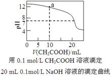 D.下圖中a點(diǎn)溶液中各離子濃度的關(guān)系是:c(OH-)=c(H+)+c(CH3COO-)+2c(CH3COOH)![]()