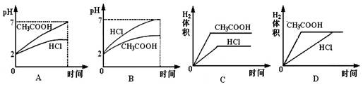 在體積均為1L,pH均等于2的鹽酸和醋酸溶液,分別投入0.23g Na,則下圖中比較符合反應事實的曲線是( )![]()