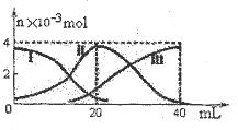 常溫下,向20mL 0.2mol/L H2A溶液中滴加0.2 mol/L NaOH溶液。有關(guān)微粒的物質(zhì)的量變化如圖(其中I代表H2A,II代表HA-,III代表A2-,橫坐標(biāo)表示加入NaOH的體積)。根據(jù)圖示判斷,下列說(shuō)法正確的是( )![]()