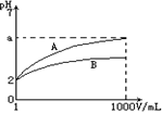 pH=2的A、B兩種酸溶液各lmL,分別加水稀釋到1000 mL,其溶液的pH與溶液體積(V)的關(guān)系如圖所示,則下列說法正確的是 ![]()