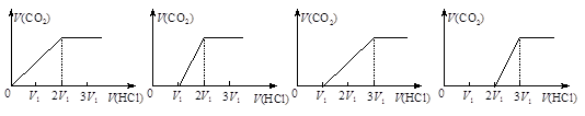 往含等物質(zhì)的量CO32-和HCO3-的溶液中滴入HCl溶液,下列表示產(chǎn)生的氣體在標(biāo)準(zhǔn)狀況下的體積與加入的HCl溶液體積關(guān)系圖正確的是