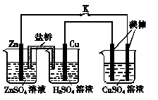 用如圖所示的裝置進(jìn)行實(shí)驗(yàn),反應(yīng)一段時(shí)間后斷開(kāi)K,向燒杯中加入0.1 mol CuO后CuSO4溶液恰好恢復(fù)到反應(yīng)前的濃度和pH。下列說(shuō)法中不正確的是( )![]()