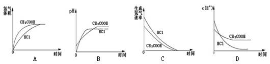 在100mL,1mol/L的HCl和CH3COOH兩種溶液中,分別加入足量的鋅粒,下列各圖中正確的是![]()