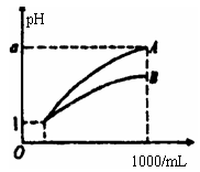 pH=1的兩種酸溶液A、B各1mL,分別加水稀釋到 1000mL,其pH與溶液體積(V)的關(guān)系如圖示,下列說(shuō)法不正確的是![]()