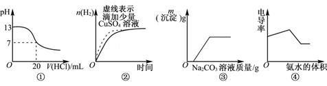| A.圖①表示25℃時,用0.1mol·L-1鹽酸滴定20mL 0.1mol·L-1氨水 |