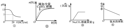 | A.圖①表示25℃時(shí),用0.1mol·L-1鹽酸滴定20mL 0.1mol·L-1NaOH溶液 |