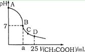 | B.在B點(diǎn),a>12.5,且有c(Na+) =c(CH3COO-) =c(OH-) =c(H+) |