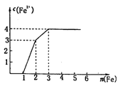 某稀溶液中含有Fe(NO3)3、Cu(NO3)2、HNO3,向其中逐漸加入鐵粉,溶液中Fe2+濃度和加入鐵粉的物質(zhì)的量的關(guān)系如圖所示。![]()