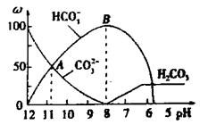 溶液20mL, 溶液的pH逐漸降低,此時(shí)溶液中含碳微粒的物質(zhì)的量分?jǐn)?shù)(ω)變化如右圖所示(CO2因逸出未畫出),下列說(shuō)法正確的是![]()