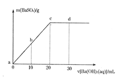 常溫下,向0.1mol/L的H2SO4溶液中逐滴加入物質(zhì)的量濃度相同的Ba(OH)2溶液,生成沉淀的質(zhì)量和加入Ba(OH)2溶液的體積關(guān)系如下圖所示,下列有關(guān)說法正確的是![]()