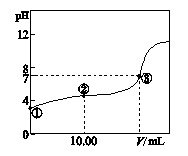 (3)圖中③點(diǎn)所示滴入的NaOH溶液的體積V 20.00 mL(填“>”、“<”或“=”)。![]()