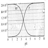 mol·L-1氫氟酸水溶液中,調(diào)節(jié)溶液pH(忽略體積變化),得到c(HF)、c(F-)與溶液pH的變化關(guān)系,如下圖所示:![]()
