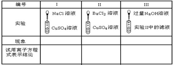 以下表格中的實驗是以CuSO4為例,分析電解質(zhì)在溶液里所起的反應(yīng)實質(zhì)![]()