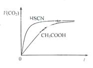 反應(yīng)初始階段,兩種溶液產(chǎn)生CO2氣體的速率存在明顯差異的原因是 。反應(yīng)結(jié)束后所得兩溶液中,c(CH3COO-) c(SCN-)(填“>”、“<”或“=”)