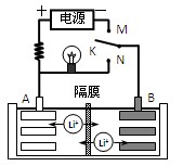 | C.K與N相接時(shí),Li+由A極區(qū)遷移到B極區(qū) |
