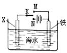 | C.X為碳棒,K置于N,可減緩鐵的腐蝕,利用的是外加電流的陰極保護(hù)法 |