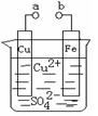 | D.a(chǎn)和b分別連接直流電源正、負極,電壓足夠大時, Cu2+向銅電極移動 |