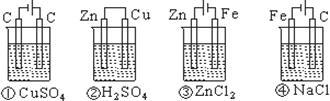 | D.電極上析出的固體的質(zhì)量:①>②>③>④ |